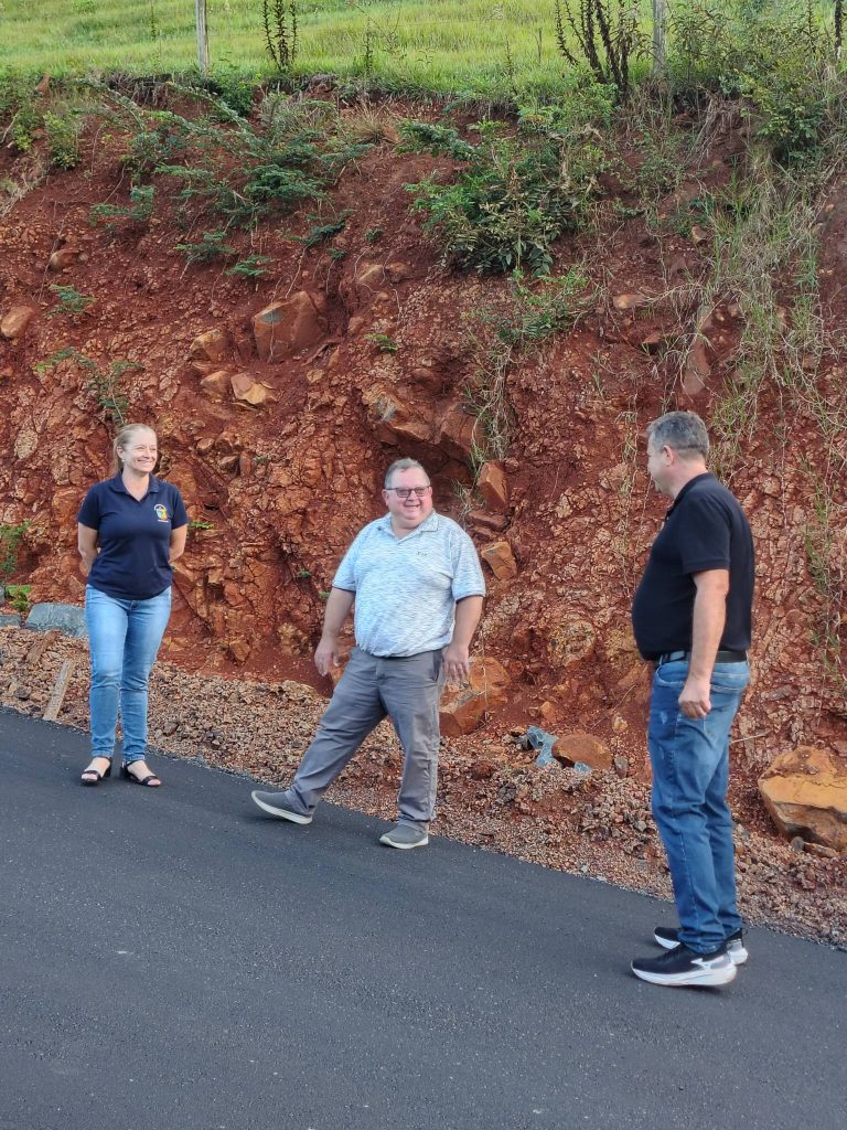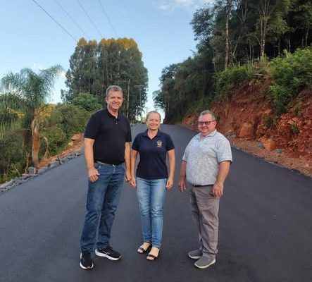 A vereadora Gelci de Souza e os vereadores Nairon de Aguiar (União) e Luiz Gomes (PSDB) conferiram na última quinta-feira, 02, o andamento da obra de pavimentação asfáltica, da comunidade de Alto Gramado, interior do município. Os vereadores analisaram como positivo o material empregado e o prazo de execução da obra, que está em sua fase final.